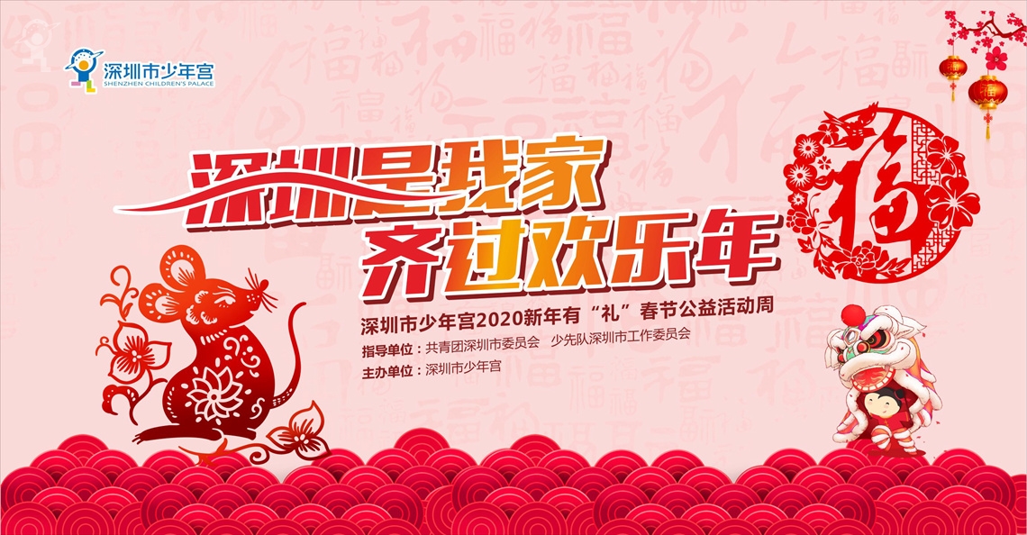 2020年新春佳节期间,市少年宫将于1月27日至1月31日(年初三至初七)举办“深圳是我家,齐过欢乐年”2020新年有“礼”春节公益活动周。
