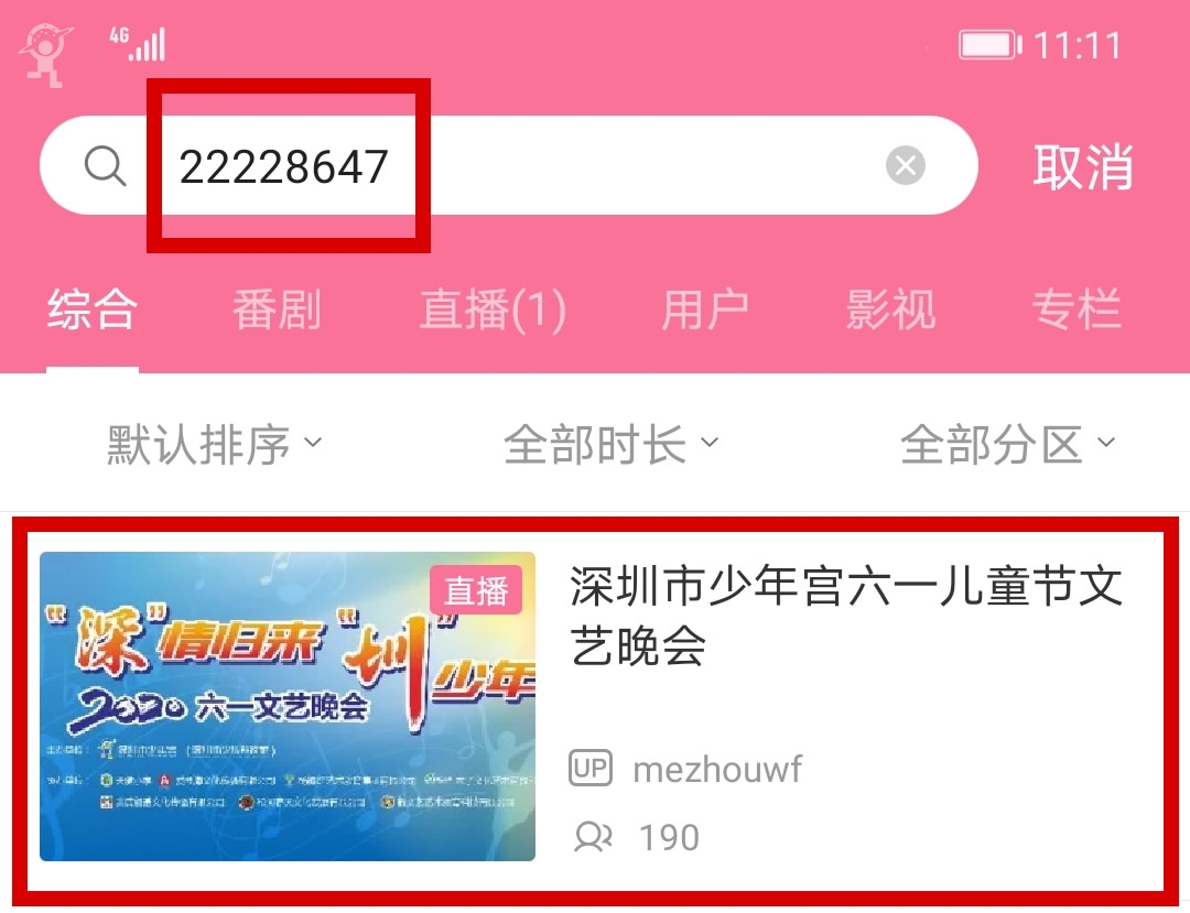 搜索:打开bilibili手机APP或登录www.bilibili.com网站,在搜索栏输入直播房间号22228647,选择少儿成长讲堂——国防讲座直播链接点击进入观看。