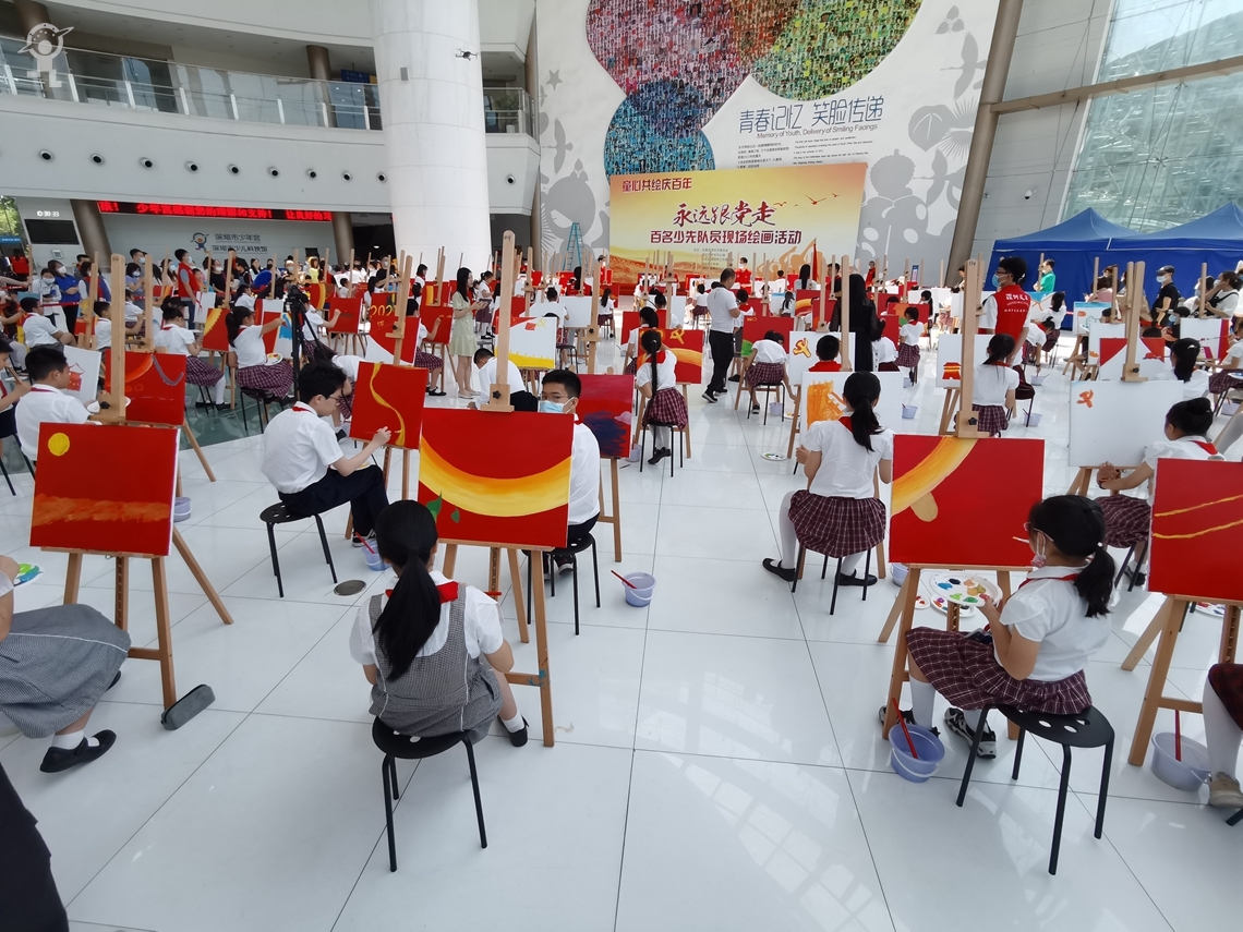 本次活动共邀请来自全市共100名少先队员参与活动。绘画活动前,主办方特邀中共深圳市委党史研究室(深圳市史志办公室)党史处处长毛剑峰为少先队员讲解中国共产党的光辉奋斗征程,百名少先队员聆听“永远跟党走”青少年党史教育系列讲座,共忆峥嵘岁月,感受百年风华,在润物无声中给青少年以心灵震撼、精神激励与思想启迪。