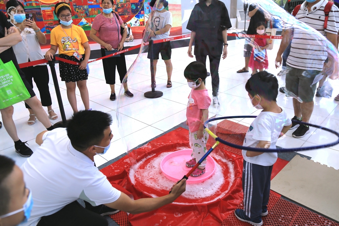 缤纷科学秀“冰”力十足,在炎炎夏日里带领现场青少年进入科学的神秘国度。透过表面的现象与表演的感官冲击,探寻内里的科学内涵,感受科学的奥秘,体会科学思想和科学精神。互动科技科普体验包含“分子料理”“火焰掌”“泡泡秀”“眼疾手快”“VR体验”等,以更加贴近日常生活的方式,揭示其中的科学原理。