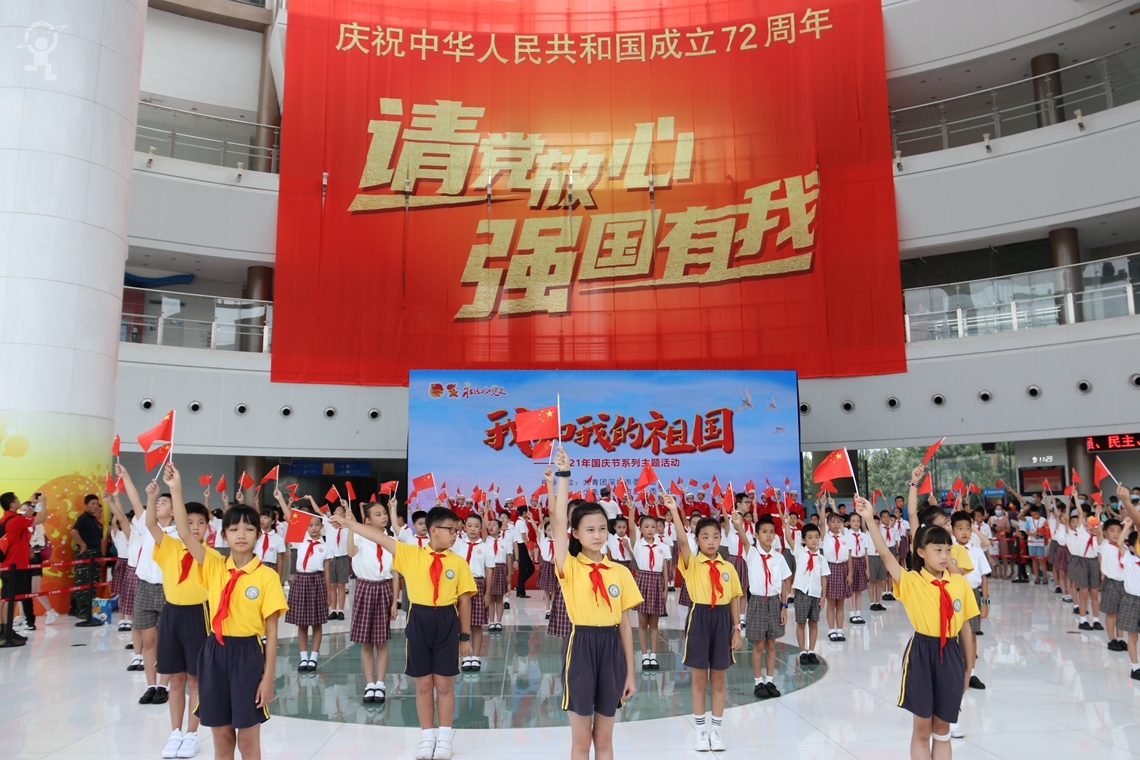 热爱祖国,是湾区青少年,在少年宫广场同升一面五星红旗的赤子情深;