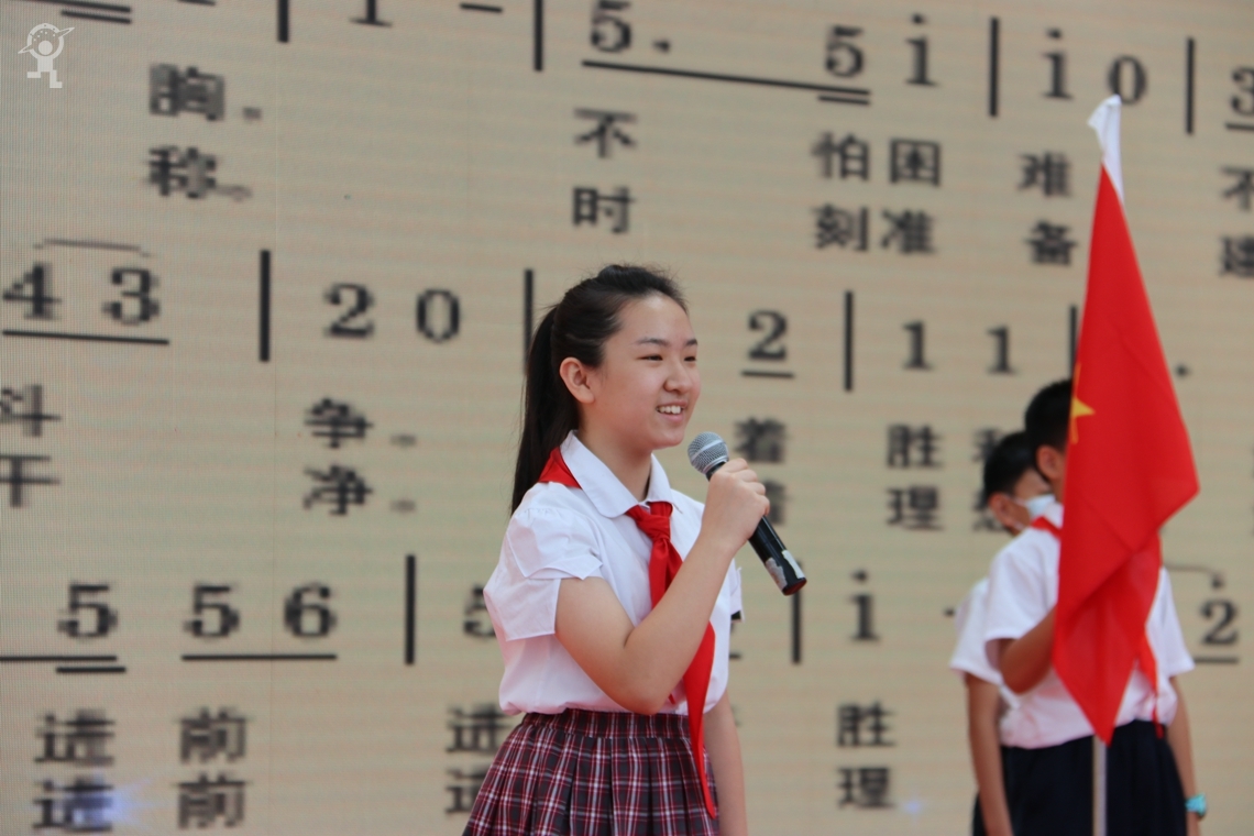 热爱祖国,是优秀少先队员,开展的少先队课上,重温党史时的神采奕奕;