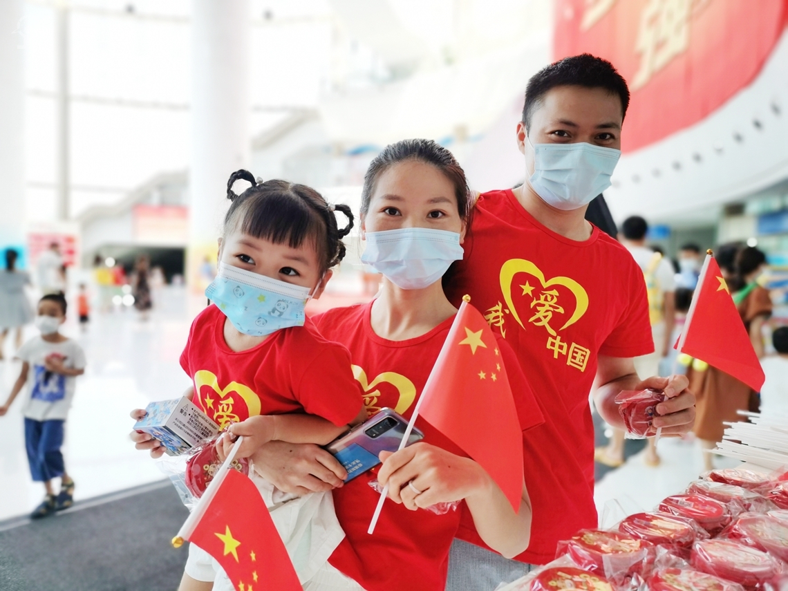热爱祖国,是携老扶幼,在祝福墙上,留下珍贵全家福的幸福满满;