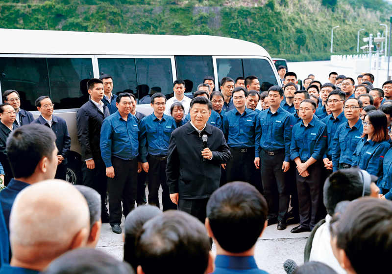 2018年4月26日下午,中共中央总书记、国家主席、中央军委主席习近平在武汉主持召开深入推动长江经济带发展座谈会并发表重要讲话。这是座谈会前,习近平于24日下午在三峡大坝左岸电站考察。 新华社记者 谢环驰/摄