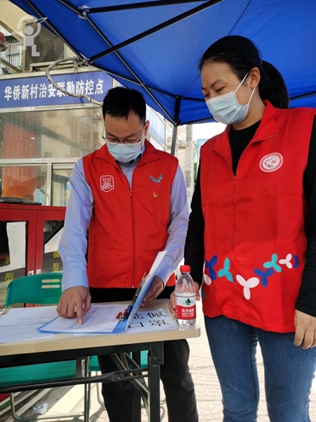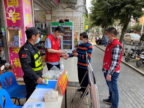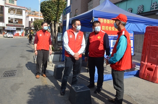 市少年宫的党员们还在华侨新村社区党委书记刘汉喜带领下走访了社区多个防疫卡口,开展联防联控志愿服务,了解卡口执勤情况,协助进行体温检测、信息登记等工作。