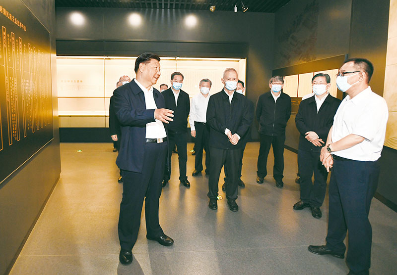 2021年8月23日至24日,中共中央总书记、国家主席、中央军委主席习近平在河北省承德市考察。这是24日上午,习近平在承德博物馆参观《望长城内外——清盛世民族团结实录》展览。 新华社记者 谢环驰/摄