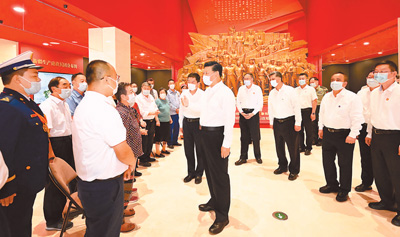 7月12日至15日,中共中央总书记、国家主席、中央军委主席习近平在新疆考察。这是13日下午,习近平在新疆生产建设兵团八师石河子市新疆兵团军垦博物馆,会见兵团老中青三代建设者代表。 |