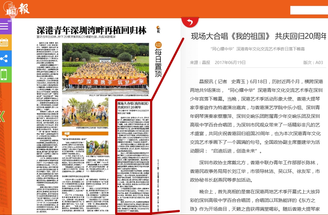 〖晶报〗现场大合唱《我的祖国》共庆回归20周年