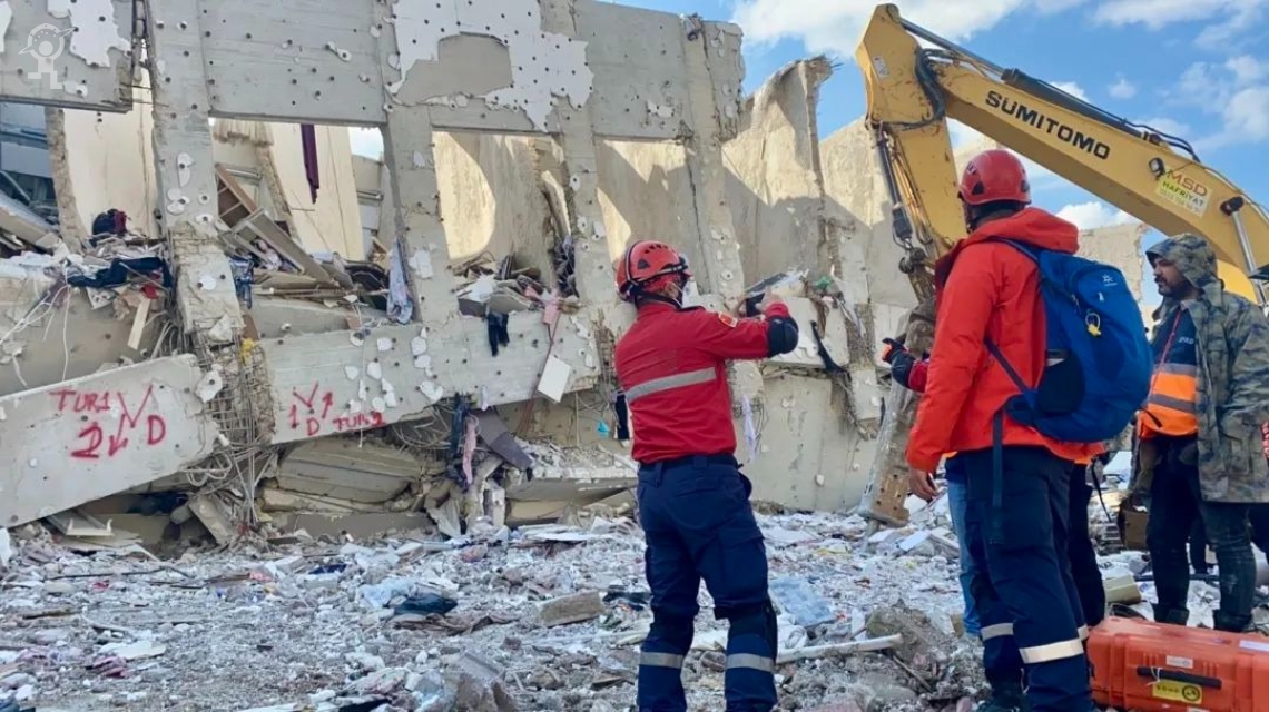 ▲2023年2月6日,土耳其一天内发生两次7.8级地震,深圳市公益救援志愿者联合会派出队员前往当地开展国际救援。