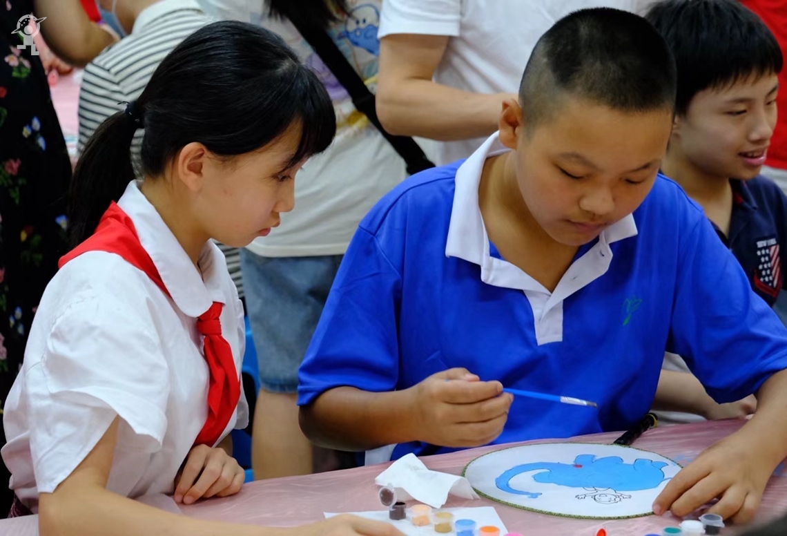 活动现场,少先队员与星星学堂的孩子共绘一幅画,共同完成提琴合奏《我和我的祖国》《红旗颂》,一同高声合唱《奔跑吧 湾区少年》。