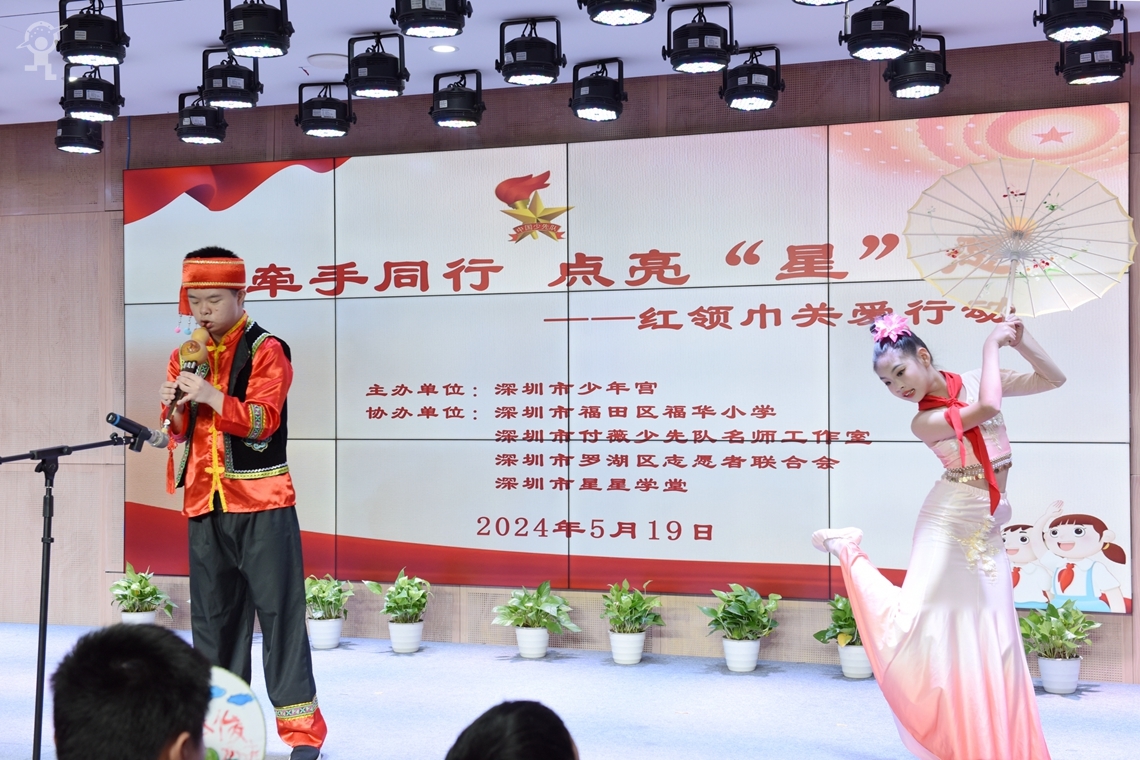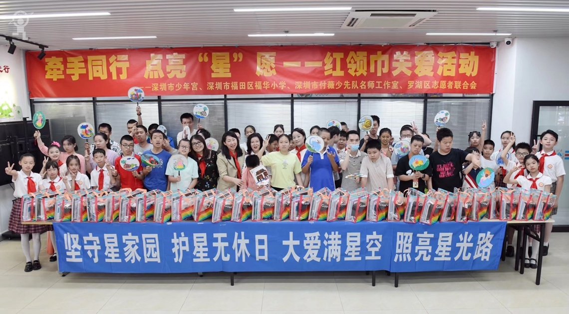 今年5月19日是第三十四次全国助残日,由深圳市少年宫主办,联合深圳市福田区福华小学、深圳市付薇少先队名师工作室、罗湖区志愿者联合会、星星学堂共同组织参与的“牵手同行 点亮星愿”红领巾“微心愿”关爱活动在深圳市星星学堂启动。
