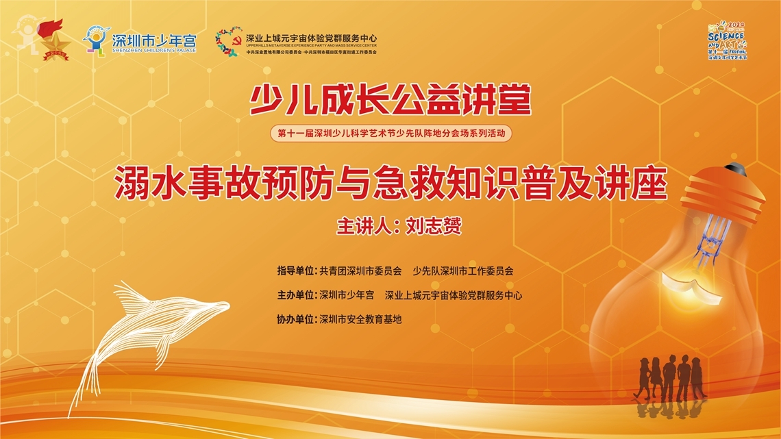 为增强青少年的“防溺水”安全意识,提高安全防范能力,有效预防和减少溺水事故发生,深圳市少年宫联合深业上城元宇宙体验党群服务中心,于7月29日(周一)举办“少儿成长公益讲堂”第101期——《溺水事故预防与急救知识普及》讲座。