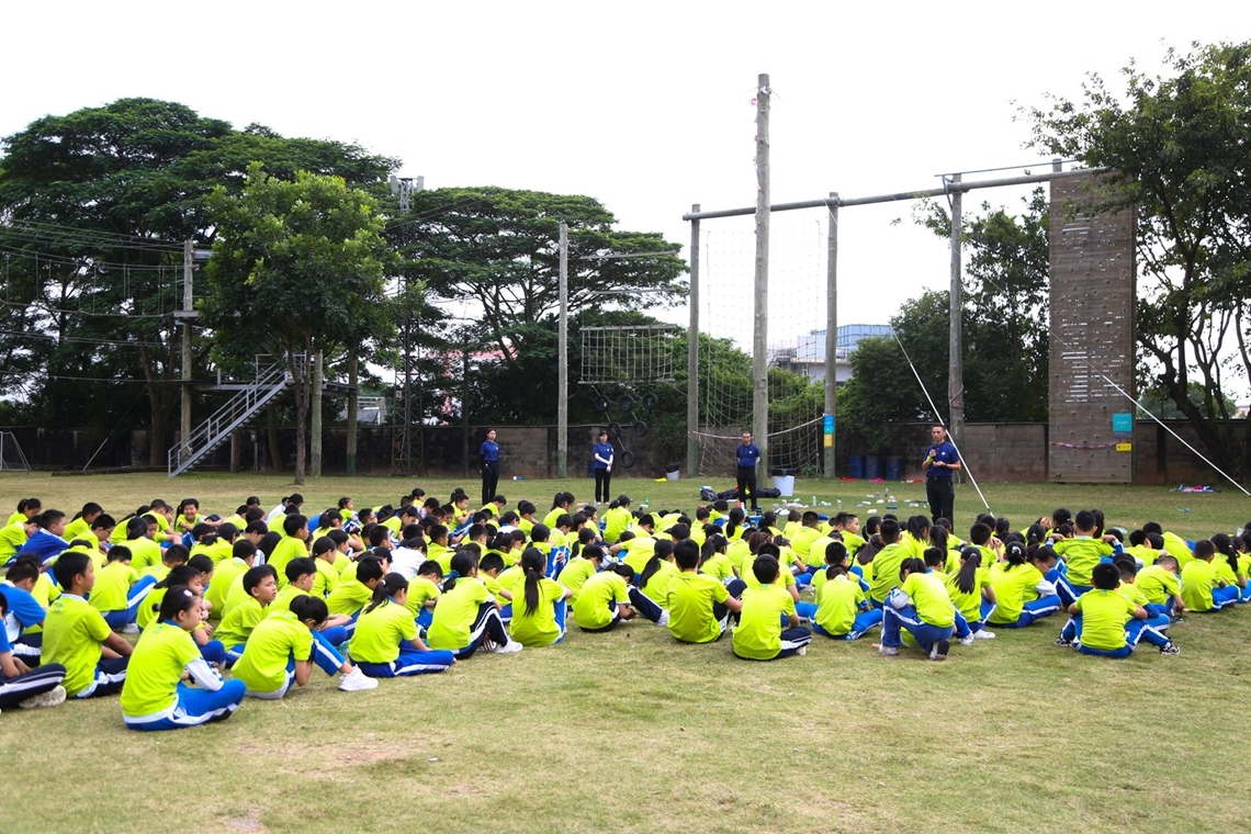 探索绿色能源的生态智慧之旅结束后,营员们在营地进行团队拓展训练。