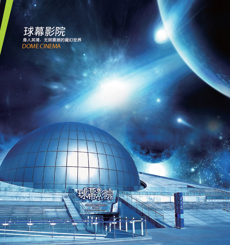 球幕影院,总投资超过4000万人民币,外部为一直径25.6米的单层网架结构,内部球幕直径18.5米,共设有172个座位,半球型屏幕面积约250平米,放映系统包括球幕电影播放系统和Digstar3数字天象系统和JBL音响系统。其中Digstar3系统不仅代表着少年宫最尖端的科技设备,也是世界上最先进的数字天象系统,它是全交互式、实时三维计算机图形系统,具有全球幕渲染、视频回放、全星空和天文演示能力及数字环绕音响。目前投入使用的Digstar3系统,少年宫的这套是世界上第三套,亚洲的第一套。其巨型球幕的放映,高精密数码图像可以准确地再现宇宙空间的景观,画面清晰稳定,观众仰卧观看,感觉为画面所包容,恍如投身其中。结合影院内5+1声道的多重音响系统,令太空景象更加生动,使人仿佛置身于浩瀚的茫茫宇宙中,气势恢弘,场面壮观,极具震撼力,深受观众欢迎。球幕影院通过寓教于乐的方式让少年儿童更深刻、更明朗地认识宇宙、生物、地理……是少年儿童学习科学知识的理想场所。