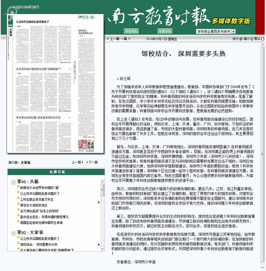 馆校结合,深圳需要多头热