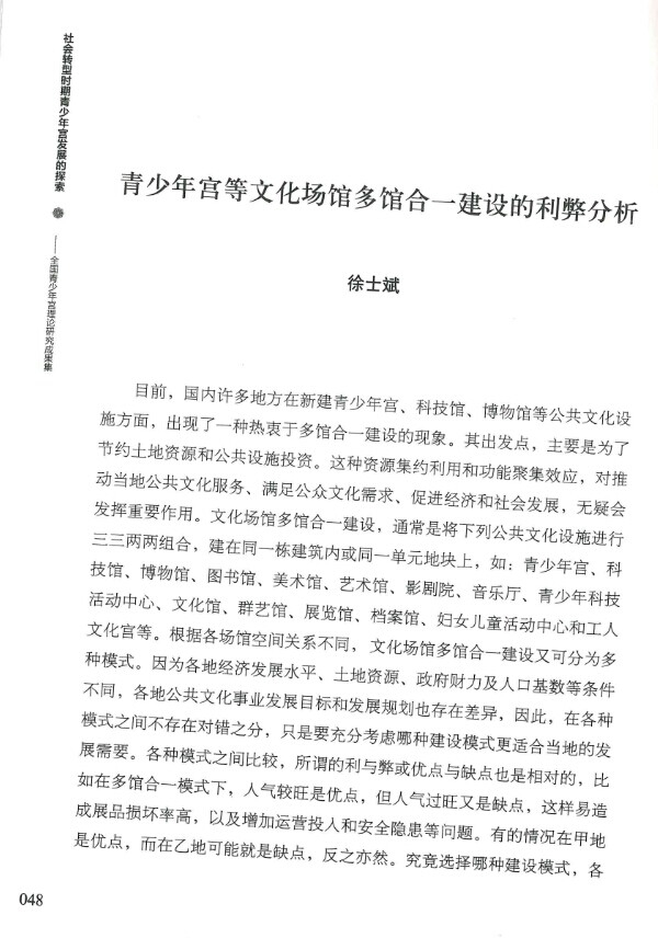 青少年宫等文化场馆多馆合一建设的利弊分析