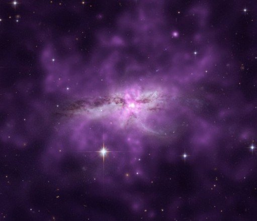 科学家认为该星系未来数百年可能演化出一个椭圆星系,但是目前还不清楚该星系的碰撞之后还可聚集多少炙热气体,其中一些气体可能丢失而流向星际空间。钱德拉X射线空间望远镜的最新合成图像揭示了炙热气体的分布,并以紫色表示,同时这张照片也合并了来自哈勃空间望远镜的光学数据,可看清发生合并后星系的长长潮汐尾,体现出天体合并中的动力学演化进程,以及星系合并时物质的分布情况。位于阿拉巴马州亨茨维尔的马歇尔太空飞行中心负责钱德拉X射线望远镜的项目运行,史密森天体物理天文台控制钱德拉望远镜的科学与飞行任务。(Everett/编译)
