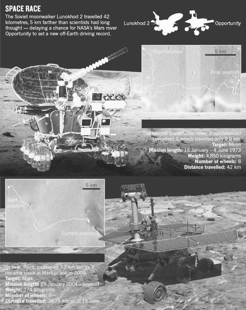 “机遇”号的主要研究者、美国纽约州伊萨卡市康奈尔大学的行星科学家Steven Squyres说:“我们不打算再去谈论有关打破纪录的事情。我对很多年前月球车团队所取得的成就肃然起敬,除非我有百分之百的把握,否则我不想声称我们已经能超过他们的纪录。”