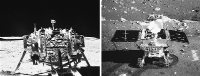 图为2013年12月北京飞控中心大屏幕上显示的嫦娥三号着陆器、巡视器互拍成像照片。探月工程是中国中长期科技发展的重大工程之一,是继发射人造地球卫星和载人航天飞行成功之后中国航天科技事业的第三个里程碑。