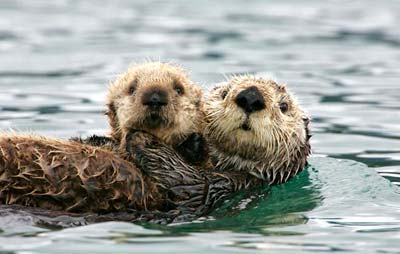 海獭并非纯肉食性动物,其基本食物是鲍鱼、牡蛎、蛤、章鱼以及其他一些鱼类和藻类。它性喜群栖,白天常常几十个甚至几百个在海里嘻闹、觅食,到了晚上,有时睡在岩石上,但更多的时间是躺在漂浮于海面的海藻上。遇到海面刮大风暴时,它们就成群地跑到岸边躲起来。海獭不像其他海兽那样,一般不作大范围的回游,喜欢过定居生活。